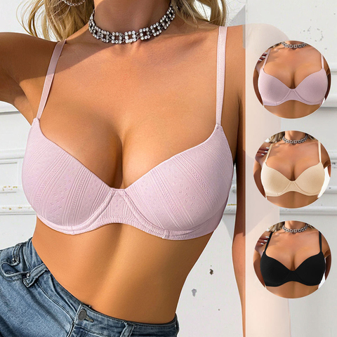Kadın yumuşak destek jöle şeritler iç çamaşırı sabit yumuşak bardak, düz renk örgü nefes Push-up dikişsiz ince sutyen